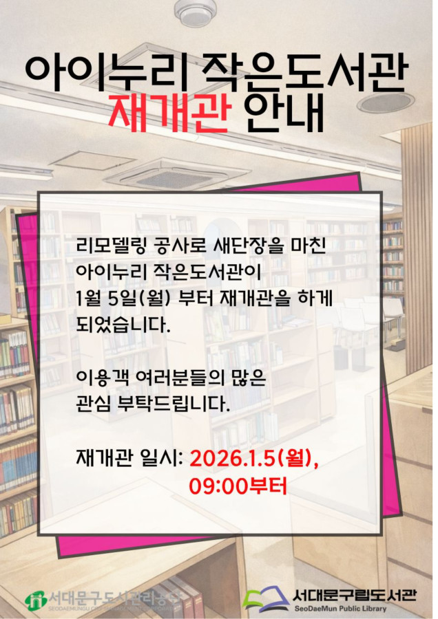 서대문구립도서관 및 작은도서관 신정 휴관 안내