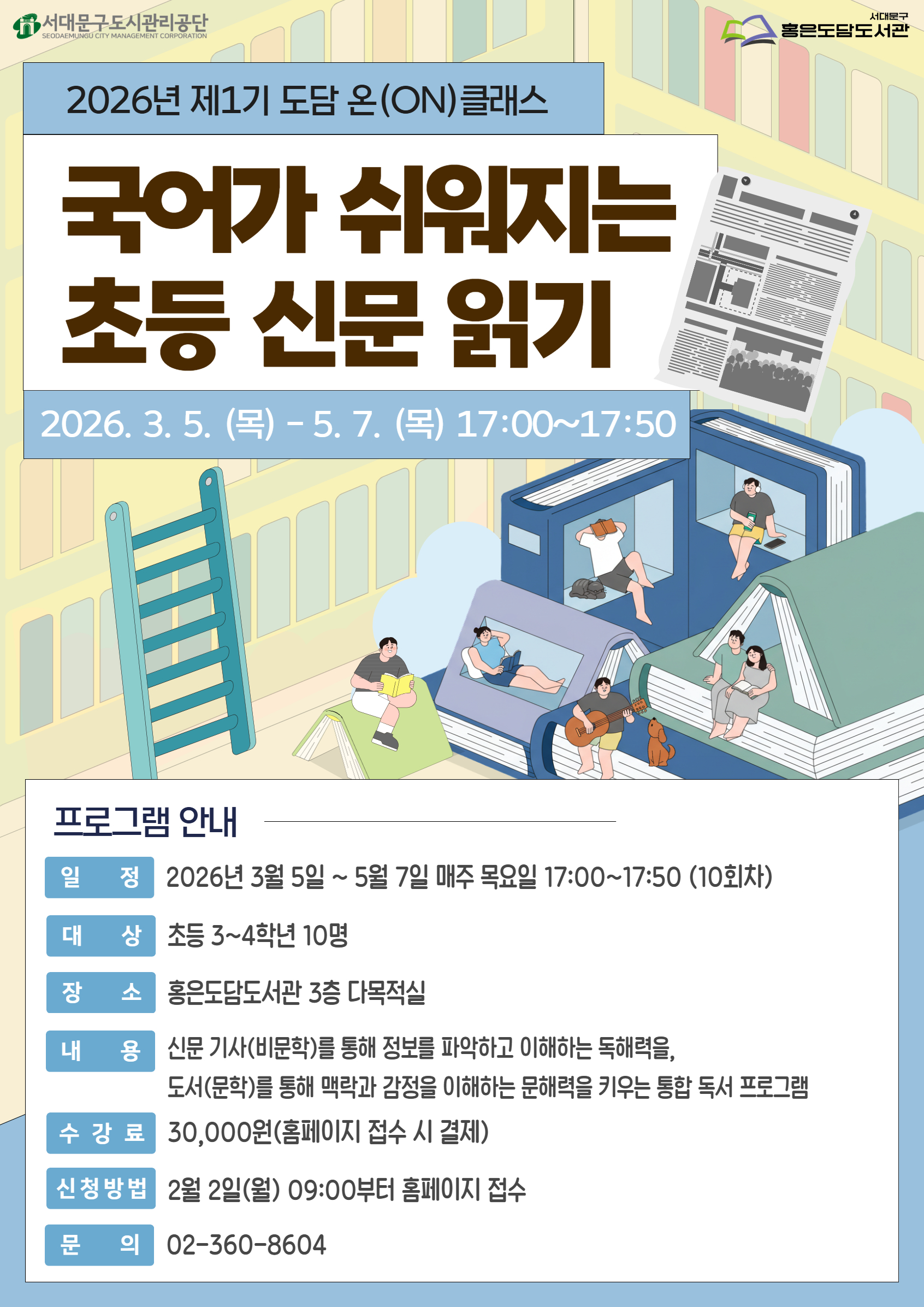 ▶신청방법: 2월 2일(월) 09:00부터 서대문구립도서관 홈페이지 접수