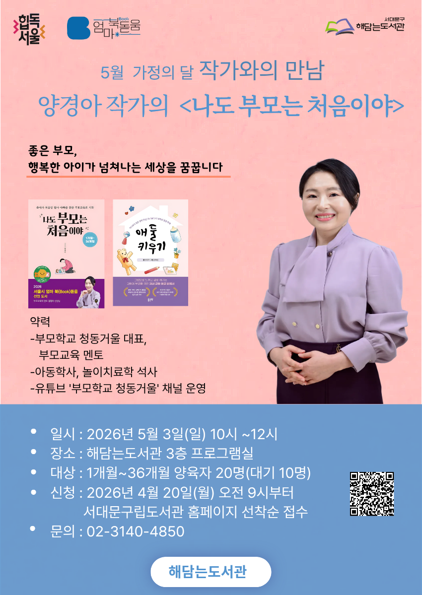 5월 가정의 달을 맞아 엄마 북(Book)돋움 선정 도서 '나도 엄마가 처음이야'의 양경아 작가님을 초대했습니다.