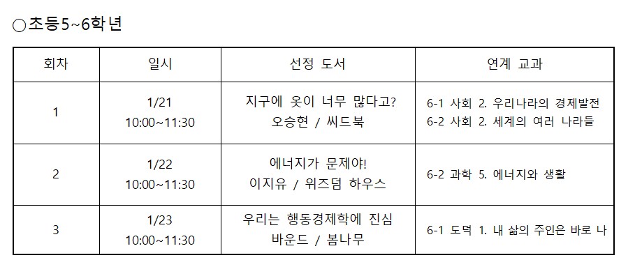 ▶초등5~6학년 겨울방학 독서 논술 특강 : 2026. 1. 21.(수) ~ 1. 23.(금) 10:00~11:30 (총 3회)