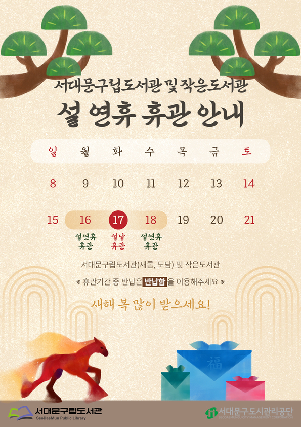 ※ 휴관 기간 중 반납은 반납함을 이용해주세요.