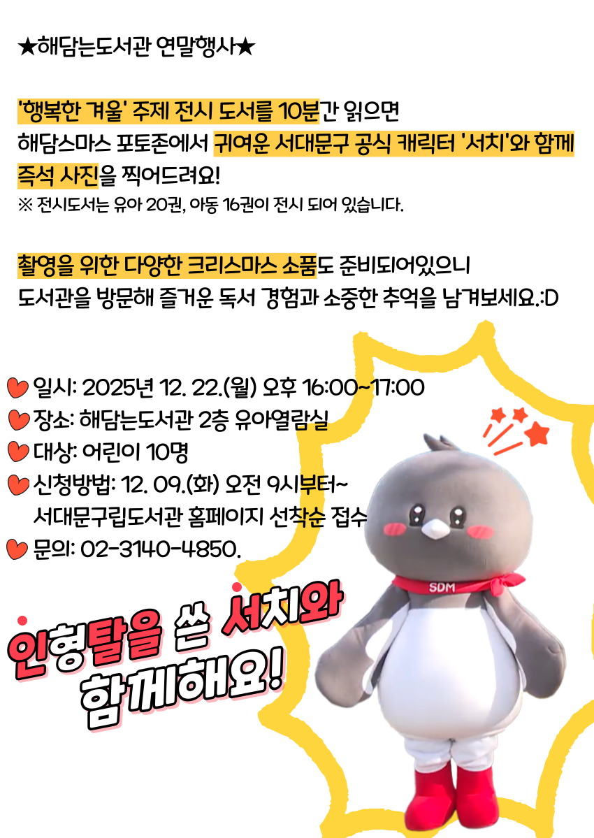 [해담는도서관 연말행사] '서치와 함께하는 해담스마스'<12월 22일 월요일>